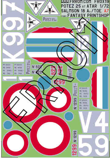 Aircraft decals (military), with the corresponding badge, for these aircraft (only one set of roundels provided):Potez 25 with Salmson 18 Ab engine, Nr 822 matricule K997 (you have to get the Salmson 18 Ab engine, please see kit FR