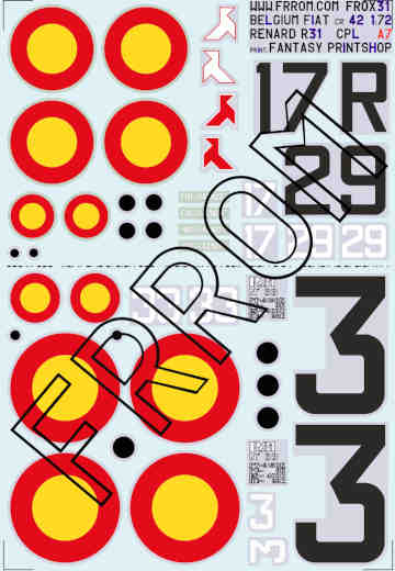 Aircraft decals (military)Allows to build one Fiat CR 42 and one Renard R-31 in Belgian colors. We wanted to have aircraft of each of the twn Fiats Sqn (Cocottes Blanches and Cocottes Rouges) whose matricules are known. Same for the Renard R